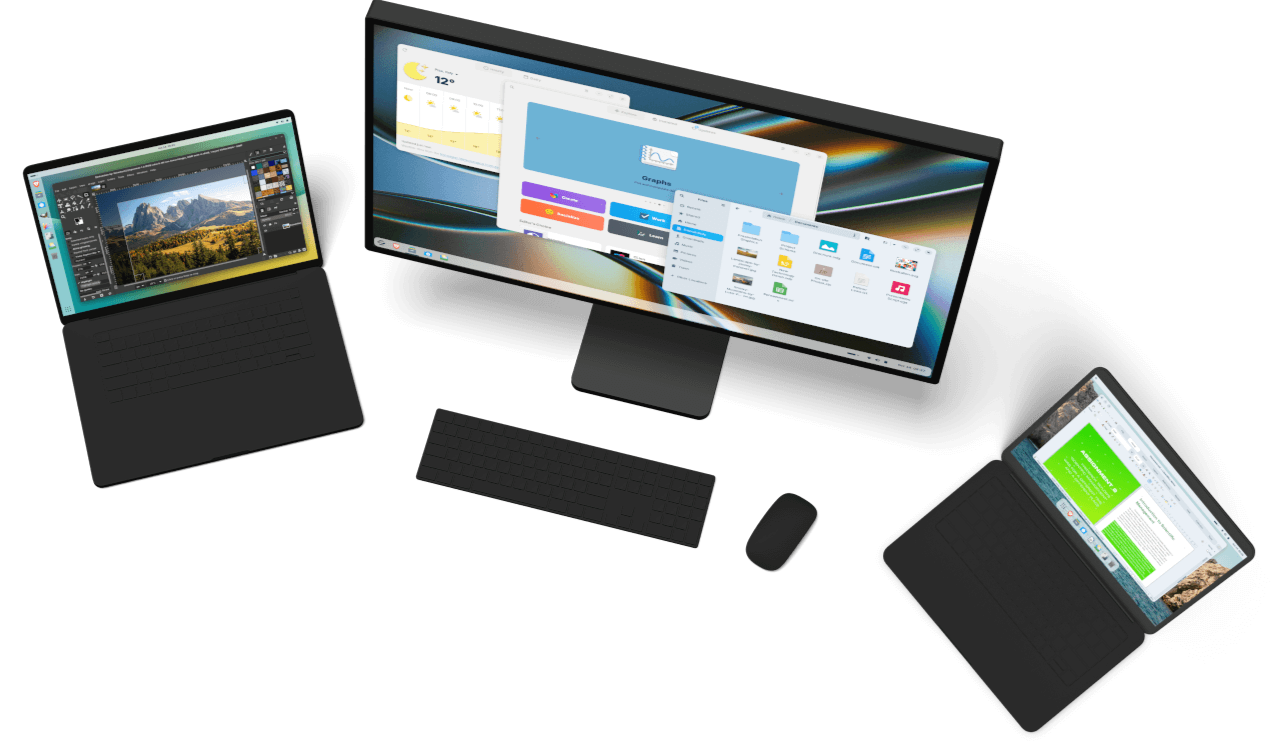 Nutzen Sie z.B. Microsoft Office/365, Teams, Google Docs oder Adobe Photoshop direkt vom Desktop aus.